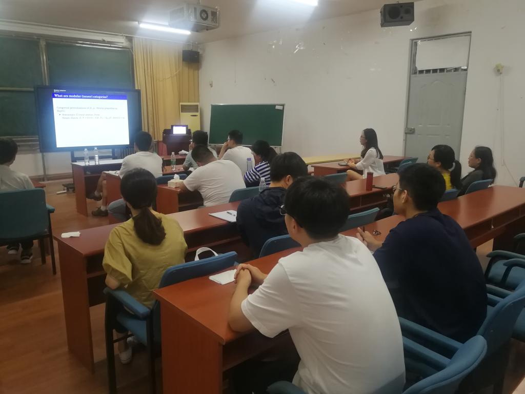 王亦龙博士首先介绍了模张量范畴的分类、数值不变量和Witt群结构等方面的研究进展及未来的研究方向,然后和参会教师就数学与应用数学专业如何设置课程体系以促进学科发展进行了交流,提出了意见建议。各位教师针对教学中如何提升课堂教学效果、如何通过老教师对年轻教师的传帮带促进教学与科研双丰收进行了热烈讨论。