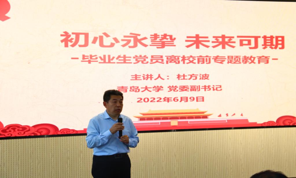 6月9日下午,校党委副书记杜方波参加Ky开元集团官网入口“初心永挚 未来可期”2022届毕业生党员离校前专题教育活动,为同学们讲授“毕业一课”。 Ky开元集团官网入口党政领导刘琪、高红伟、张国辉、魏小平、李新民、丁洁玉以及各支部书记、教师党员代表和毕业生党员参加了此次活动。