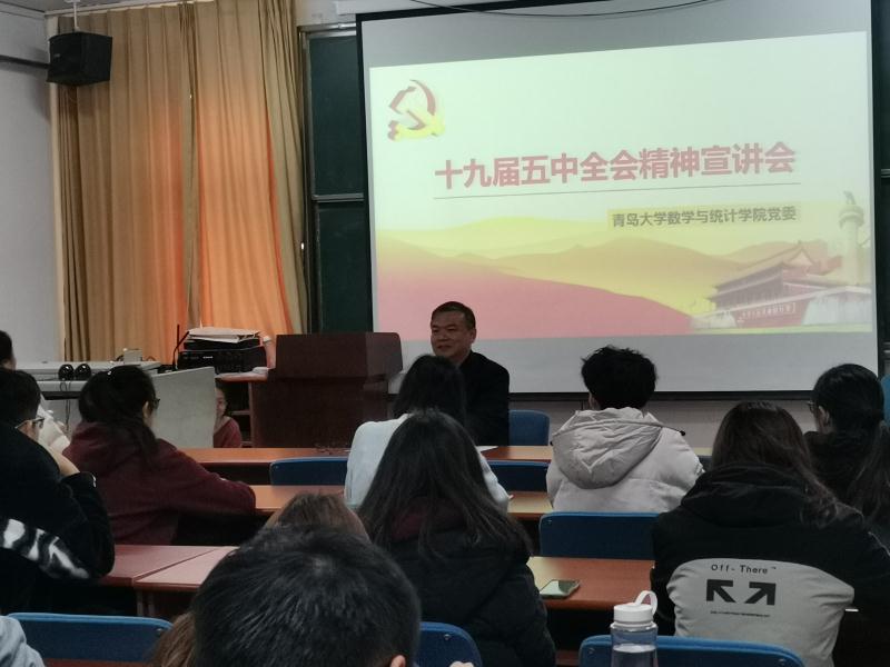 12月11日,数学与统计学院学习贯彻党的十九届五中全会精神宣讲会在励行楼302举行,Ky开元集团官网入口党委书记姜永杰对全会精神作出深度解读,各教工党支部代表和学院大学生习研会全体成员到场参加。