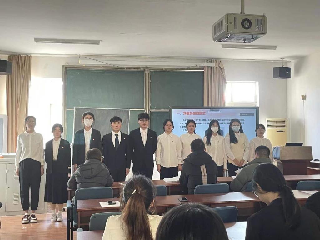 为深入贯彻落实《中国共产党党徽党旗条例》文件精神,充分发挥党徽党旗的政治功能,2023年11月28日,Ky官网本科生党支部在励行楼302组织开展“党徽润初心,党旗照使命”主题党日活动。本次活动由本科生党支部宣传委员陈亚金主讲,支部全体党员参加。