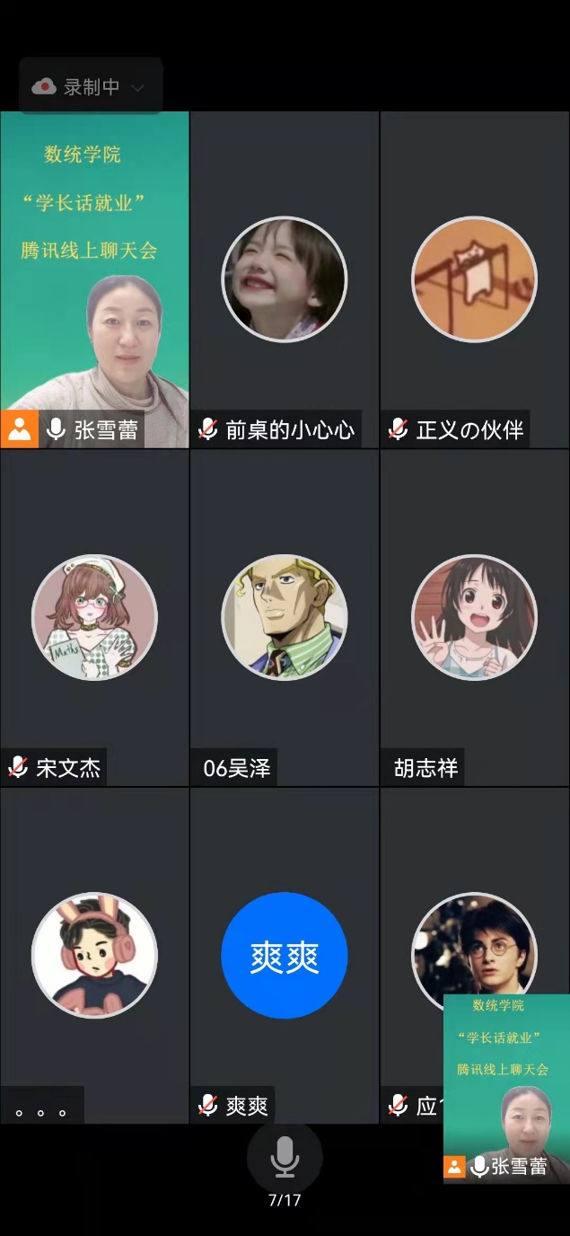 多位同学就自己的就业困惑线上请教,各位校友学长细致耐心的逐一答疑解惑,为同学们理清头绪,拨云见日。多年不见的校友们在消息群里互动致意,同学们则用文字表达了真诚的感谢。张雪蕾对校友们毫无保留的经验分享表示感谢,希望在校同学收获真经,积极行动,苦练内功,早做规划;也祝愿校友们工作顺利,疫情下保护好自己,常回母校看看。
