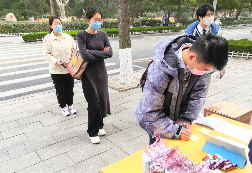 活动以工作人员分享π节由来开始,宣传数学文化,并邀请同学们参与有趣的数学小游戏,受到了同学们的热烈欢迎。在现场组织人员的维控下,同学们保持安全距离,排队有序的参与。活动的最后,同学们纷纷在展板上留下了美好的寄语,比如“数学是世界上最美的学科”、“国际数学日快乐,祝福Ky开元集团官网入口越来越好!”、“希望疫情早日结束,青岛加油!”、“早日解封,去看日出日落”等等。