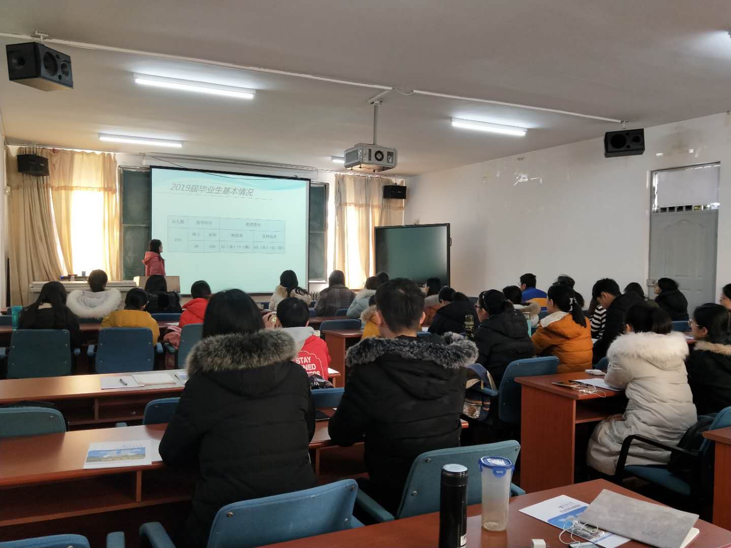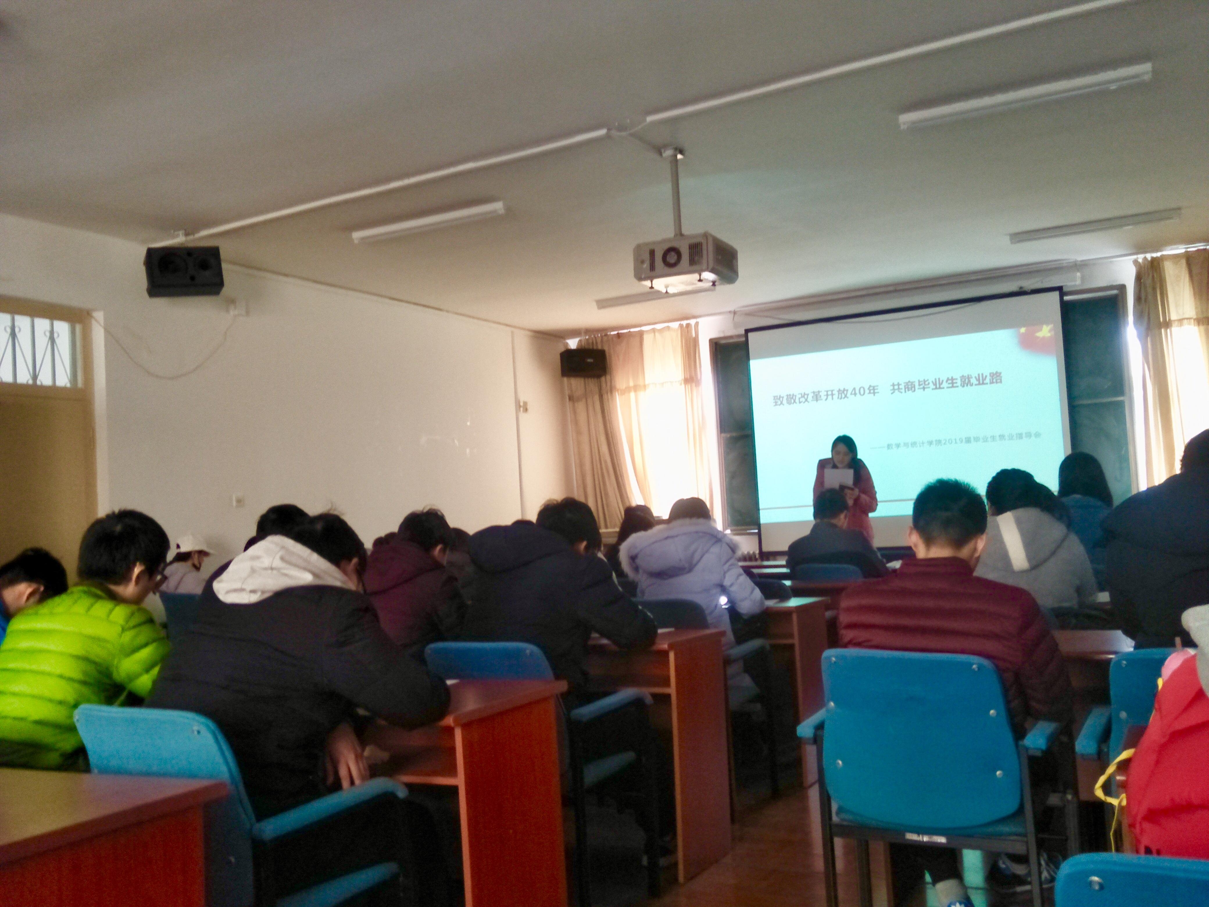 会上,李玲慧首先结合习近平总书记在改革开放40周年大会上的重要讲话精神,倡议同学们向改革先锋学习,牢记习近平总书记对广大青年的希望,增强本领,不忘时代使命,树立远大理想。然后从就业派遣、省内外签约、解约流程、就业形式等方面详细介绍了毕业手续。强调同学们在就业过程中要充分利用学校发布就业信息的相关平台,积极参加招聘会,不断提高自身的就业能力,发挥就业优势,更好、更快的找到理想工作。