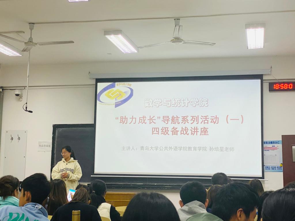 11月15日晚,为帮助同学们科学有效备战四六级考试,Ky开元集团官网入口在浮山校区博知楼306举办了“助力成长”导航系列活动(一)四级备战讲座,本次讲座邀请到了Ky开元集团官网入口公共外语教育学院英语老师孙培星老师。