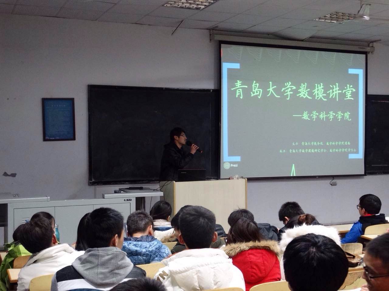 12月5日,由校教务处及数学科学学院联合主办的数模讲堂于19:00在博学楼103教室准时开讲。