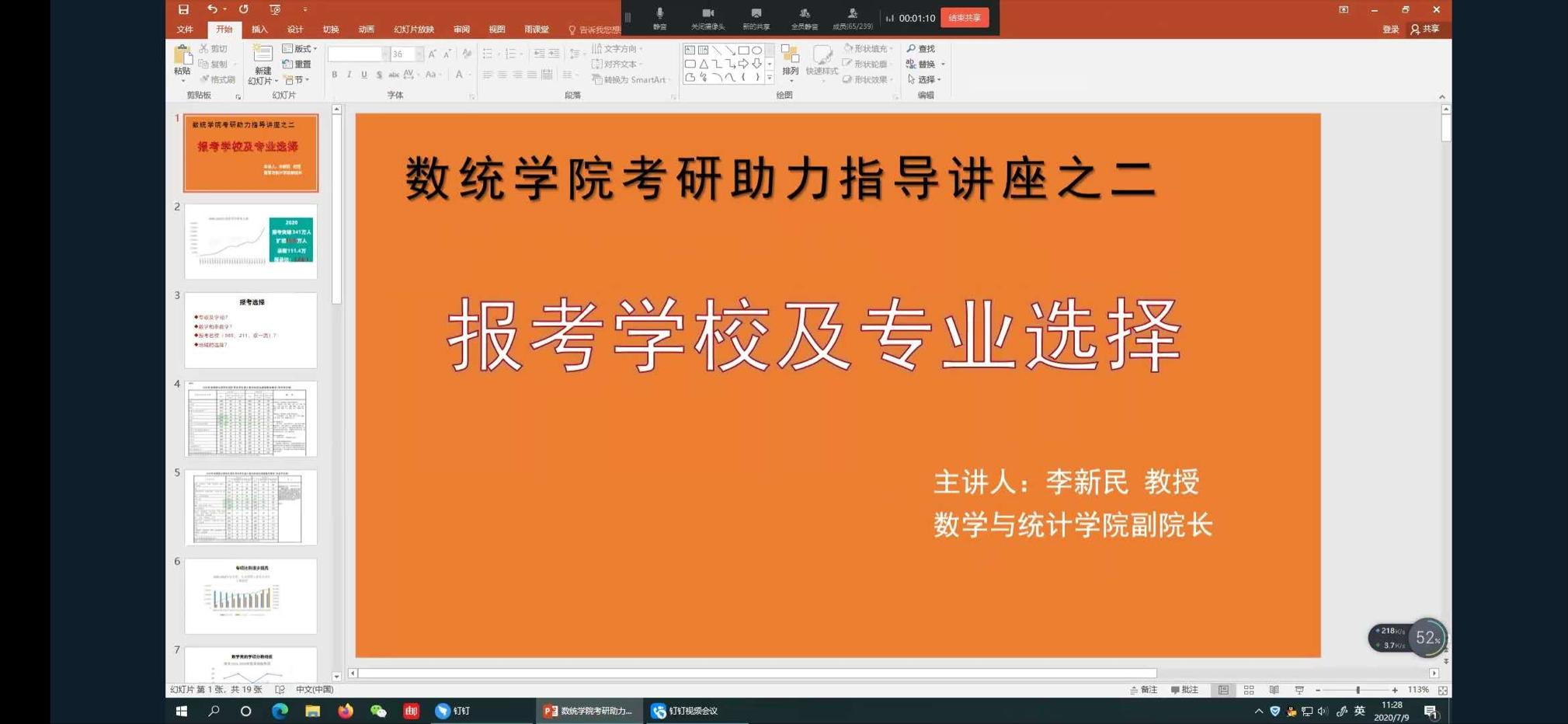 为帮助同学们备战2020年考研,7月9日,Ky开元集团官网入口通过钉钉线上直播的方式召开主题为“考研学校及专业选择”考研助力系列讲座。讲座由学院副院长李新民主讲,2017级考研同学参加。