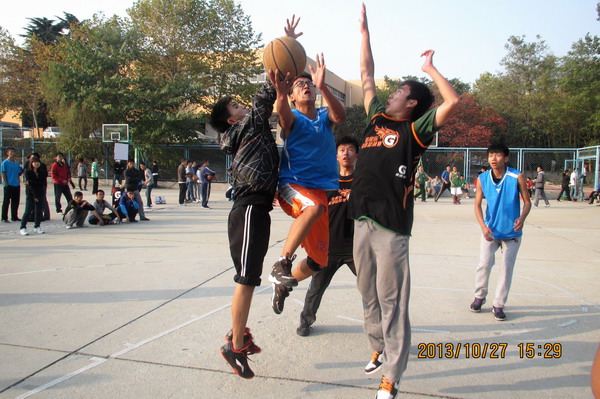 10月27日,我校第六届体育嘉年华篮球比赛在西院篮球场开赛。经过三个小时的激烈角逐,自发组队的“百度一下”队,师范学院代表队,经济学院二队,化学化工学院及数学科学学院代表队等五个战队脱颖而出,顺利晋级决赛。