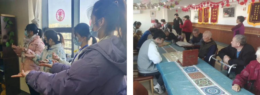 阵阵春风暖人心敬老爱老势必行——福山老年公寓义工活动2月26日π部分成员前往福山老年公寓进行义工活动。志愿者们陪伴老人下棋、做颈部健康操、聆听爷爷奶奶们的芳华故事等,互动过程温馨而难忘。志愿者们领略到沟通的重要性,也体会到家人陪伴能够带来的无可替代的心理慰藉。