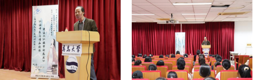 讲座伊始,范嘉晨教授指出《红楼梦》是一部跨学科的、不分文理的、意义深刻的著作,期望同学们能在课余时间以朴实平实的态度耐心品读。讲座中,范嘉晨教授用通俗易懂的语言,依次从“贾宝玉补天愿望落空”、“宝玉思想性格不被理解”、“宝黛爱情遭受摧残”、“大观园的毁灭”四个方面对《红楼梦》的悲剧做出详细解读。范嘉晨教授讲到,由于封建官僚社会后期的严重腐败和贾宝玉单纯善良的天性,其向往的“修身齐家治国平天下”的男儿理想无法实现,从而导致故事悲剧的出现。且教授将问题进一步深化,指出小说中所惋惜的也是鲁迅先生口中“埋头苦干、拼命硬干、为民请命、舍身求法”的一类人,引发同学们对传统官僚社会的深刻思考。