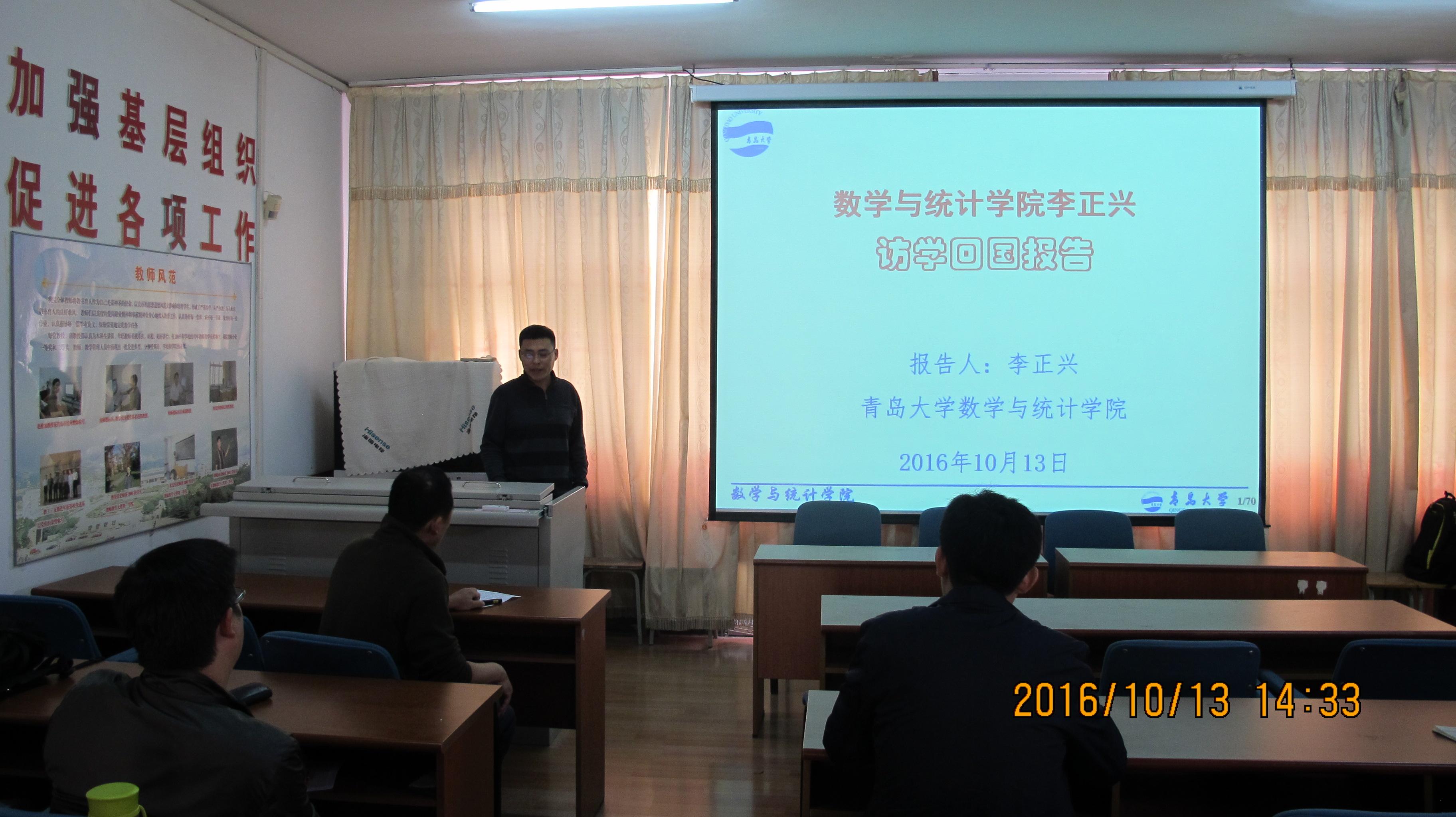 汇报交流会上,李正兴老师汇报了在布鲁克大学访学期间的生活、学习和和科研情况,并解答了老师们所关心的有关访学的问题。通过汇报交流,老师们了解国外大学的一些教育现状与科研动态以及访学应注意的问题,为后续老师的访学提供了有效的帮助。