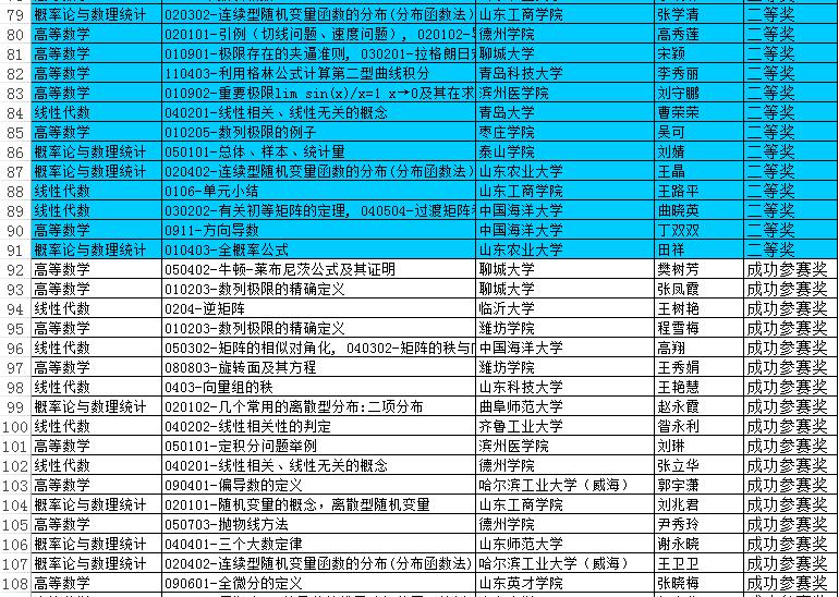经过激烈角逐,Ky开元集团官网入口参赛的6名教师全部获奖,共获得3项特等奖、1项一等奖和2项二等奖,在山东省全部参加竞赛的高等院校中获特等奖数量位居全省第一(此外,仅有山东大学和青岛科技大学各获2项特等奖)。我校数学科学学院教师王彩芬、周淑娟荣获特等奖,宋丽荣获一等奖,朱宏伟、曹荣荣荣获二等奖。数学科学学院负责组织参加本次竞赛,我校应用技术学院教师田磊也获得1项特等奖。
