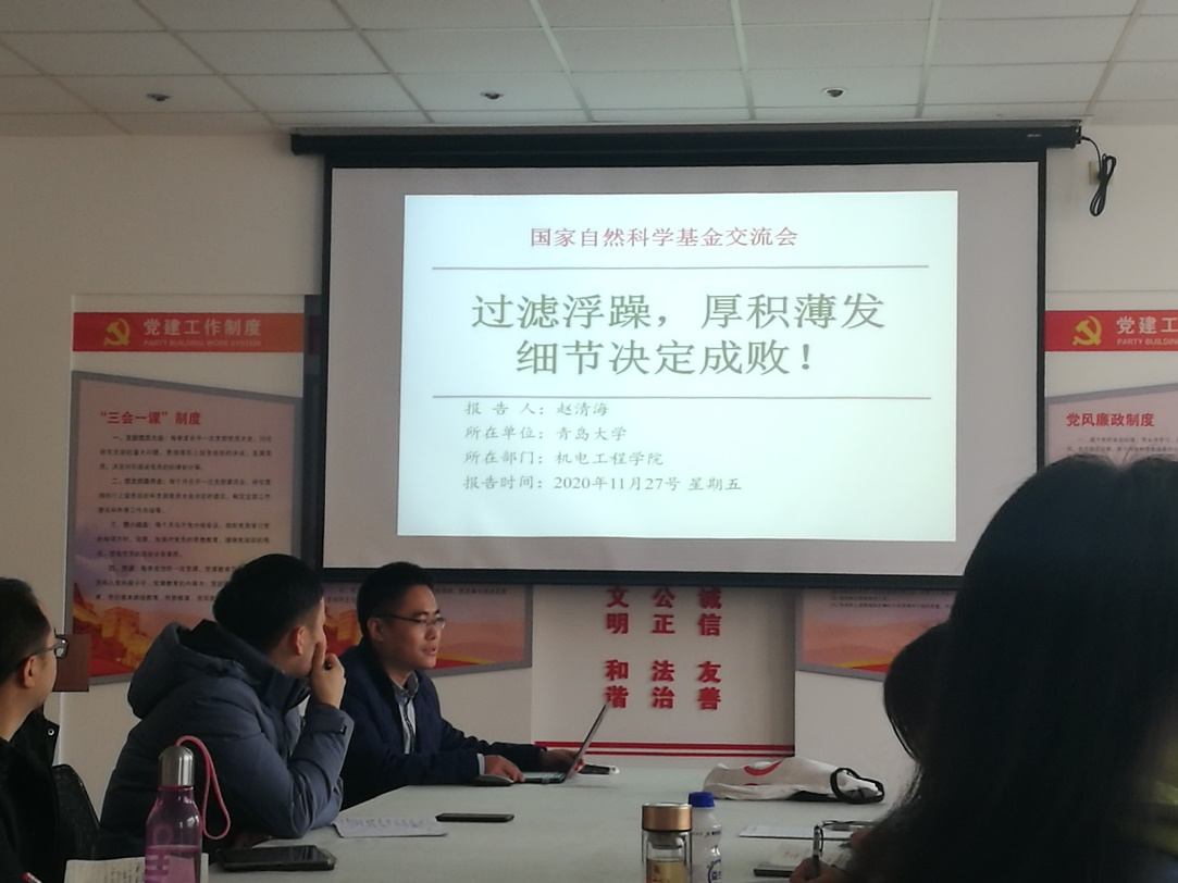 11月27日,Ky开元集团官网入口与机电工程学院在诚思楼211会议室举行了2021年国家自然科学基金申报经验交流会,Ky开元集团官网入口谷岩教授以“基金申报的一点体会”和赵清海博士以“过滤浮躁,厚积薄发,细节决定成败”为题进行了交流。交流会由机电工程学院副院长张洪信教授和Ky开元集团官网入口副院长李新民教授共同主持,两学院拟申报2020年国家自然科学基金的部分教师参加了交流会。