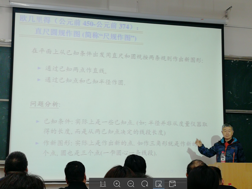 3月31日上午,在金家岭校区西一教111,华中师范大学樊恽教授应邀来Ky开元集团官网入口做了题为“几何作图——从欧几里得到高斯、伽罗瓦”的学术报告。报告由Ky开元集团官网入口院长高红伟主持,学院党委副书记张雪蕾、海进科教授、辅导员王珺鹏及2018级本科生近200人聆听报告会。此次报告为数统学院“师说新语”讲座2019年第二期,总第8期。