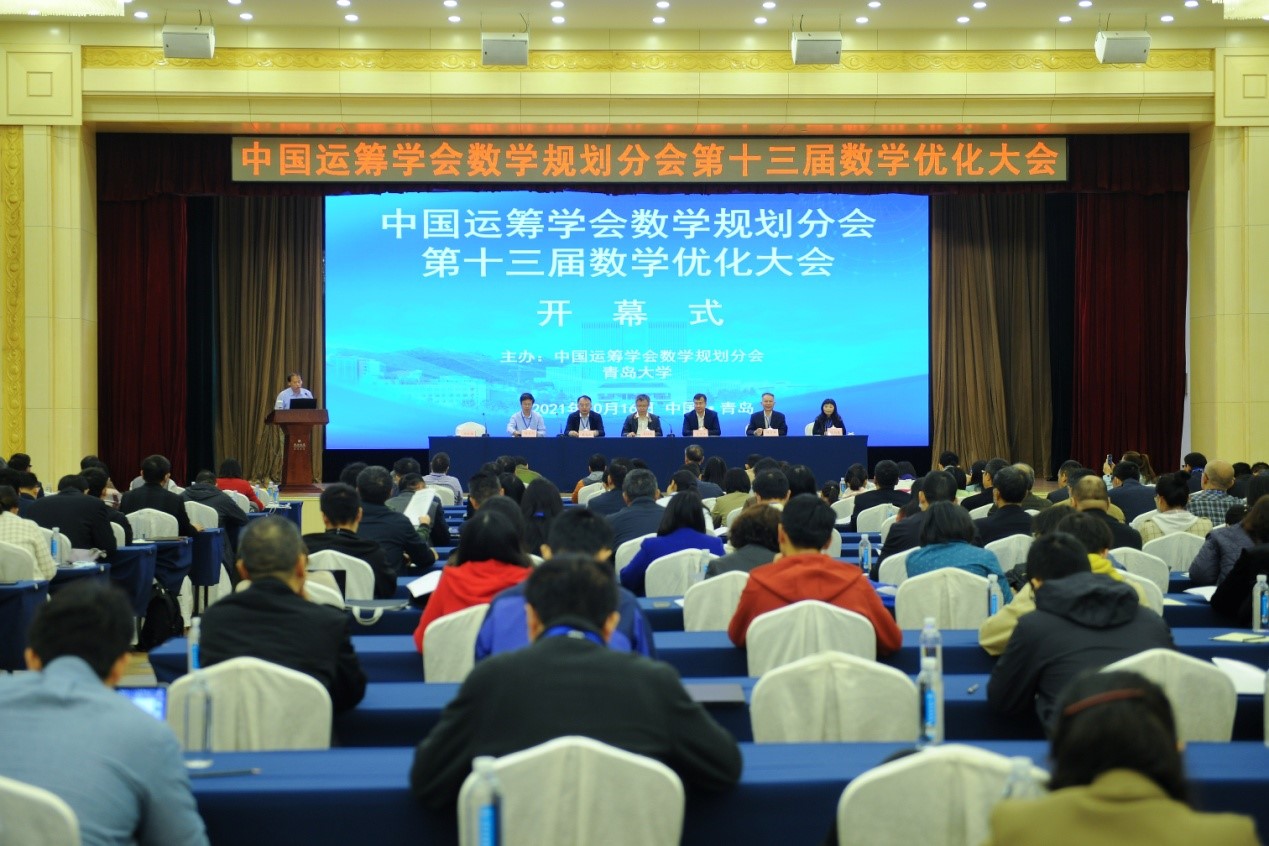 2021年10月15-18日,由中国运筹学会数学规划分会和Ky开元集团官网入口联合主办的中国运筹学会数学规划分会第十三届数学优化大会在青岛黄海饭店召开。中国运筹学会理事长研究员戴彧虹研究员,青岛市科协党组成员、副主席王崇江,Ky开元集团官网入口党委常委、副校长肖江南,中国运筹学会数学规划分会理事长教授徐大川、中国运筹学会秘书长陈旭瑾研究员以及大会报告人代表修乃华教授等出席开幕式,近300名学者线下参加了此次大会。