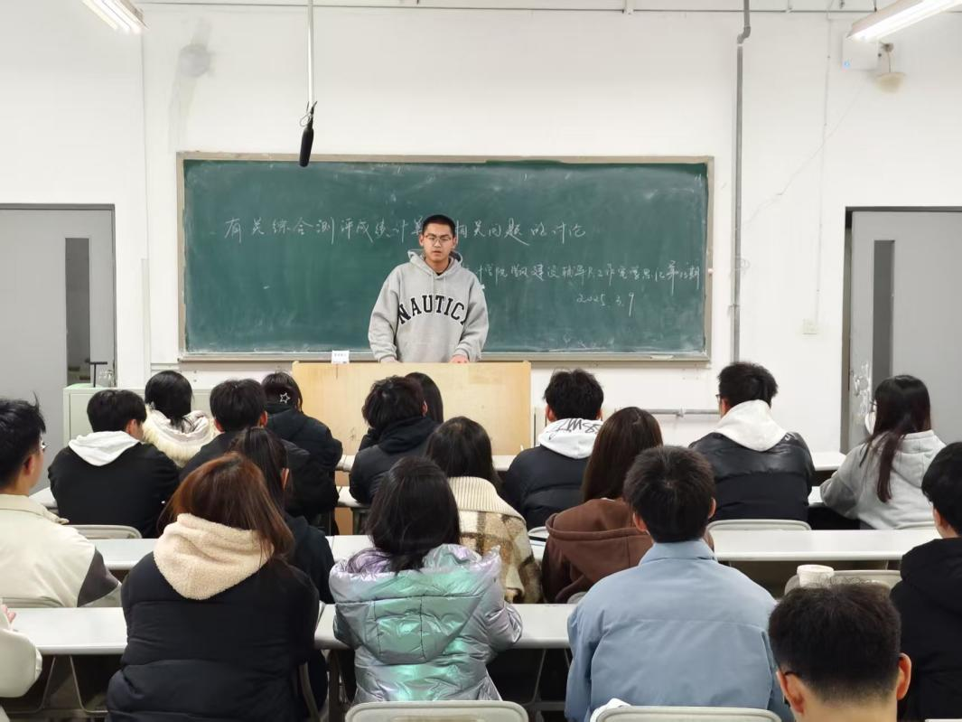 2023级班长代表冯承栋就德智体美劳五个方面对综合测评成绩展开详细解读。他指出,在德育层面,分数核算务必全面且精准,应涵盖班级里的每一位同学;智育层面,则需依据既定公式,综合课程考试、平时作业、课堂表现等综合因素计算学业成绩;体育层面,借助青少年健康服务平台计算体育综测分,以此确保成绩准确无误;美育层面,鼓励同学们积极参与各类活动;劳育层面,提醒同学们要重视宿舍卫生成绩,主动投身各类社会实践活动。
