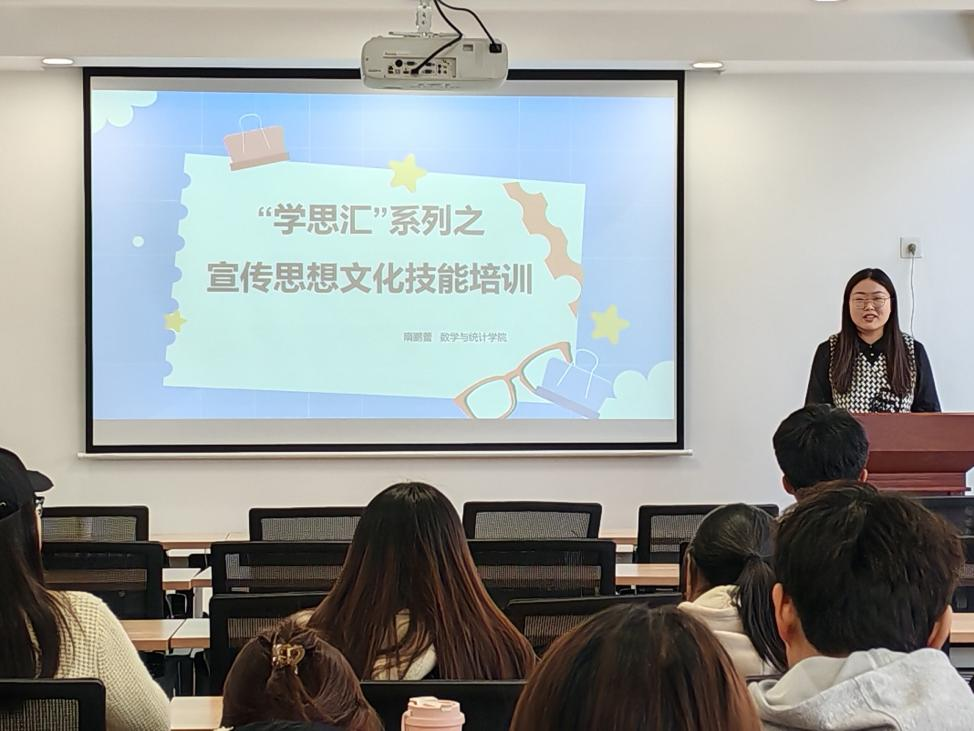 学生骨干作为学院思政育人的中坚力量,其综合能力的提高直接关乎学院宣传思想工作质效。3月20日,学风建设辅导员工作室活动“学思汇”第十四期—宣传思想文化技能培训活动于金家岭西院大学生活动中心107室开展。本期活动由我院辅导员隋鹏蕾担任主讲嘉宾,2024级各班学生骨干参与。