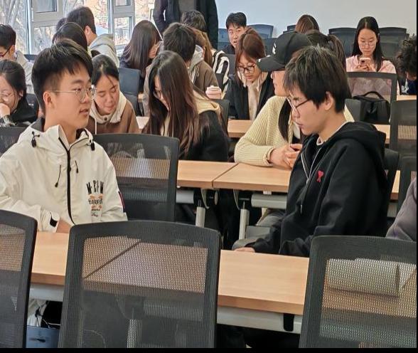 讲解结束,隋鹏蕾提出两个问题:“作为学生骨干队伍的一员,如何在信息化时代保持头脑清澈,明辨是非?”“AI时代学生骨干如何以身作则,正确合理地使用Deepseek,ChatGPT?”随后,各位学生骨干围绕问题展开激烈小组讨论。讨论期间,大家踊跃发言,交流氛围十分热烈,最终各小组纷纷给出自己的解答。